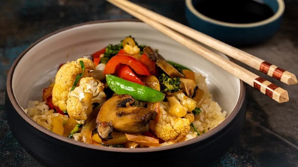 Vegetables: Broccoli, bok choy, mushrooms, eggplant, and green beans soak up the sauce and highlight its umami notes.